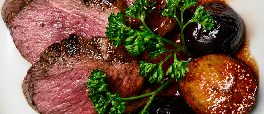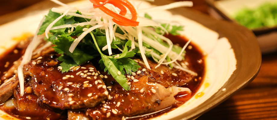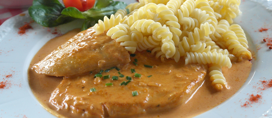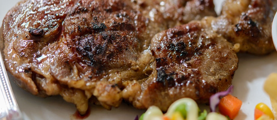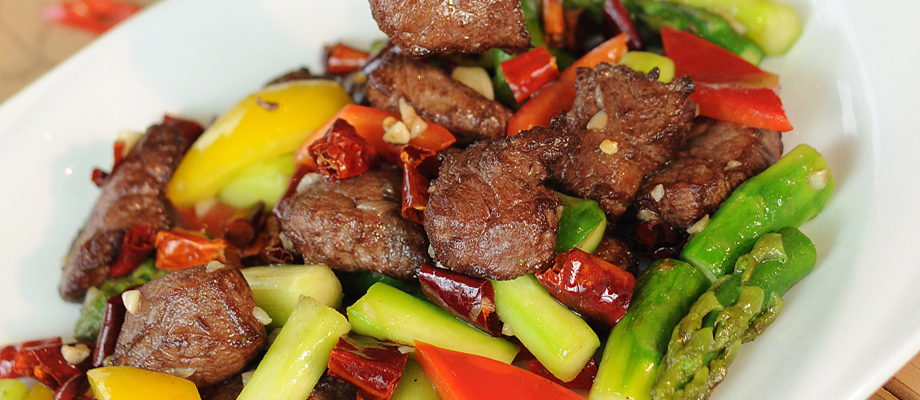 Tacu-tacu de frijoles canarios con encebollado de pollo y verduras