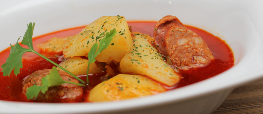 Guiso de papas nativas chilotas con longanizas de Chillán