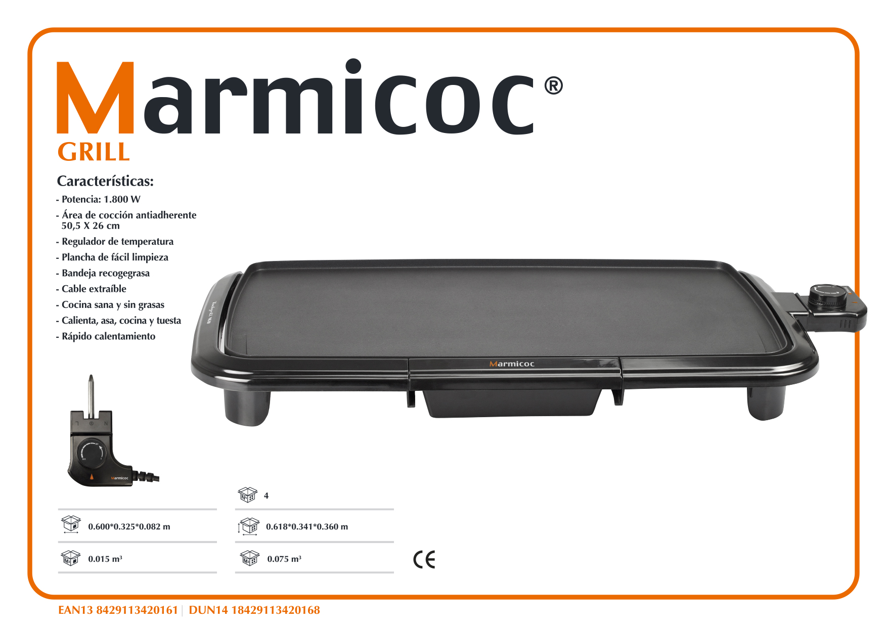 Tiene un termostato ajustable con distintos niveles, para elegir la temperatura adecuada para verduras, carne, etc. Una vez que se apaga, mantiene el calor para que pueda llevarse a la mesa. Fácil limpieza Su superficie lisa, la hace muy fácil de limpiar y si aprovecha el calor residual conseguirá mejores resultado con un simple paño de cocina humedecido. |