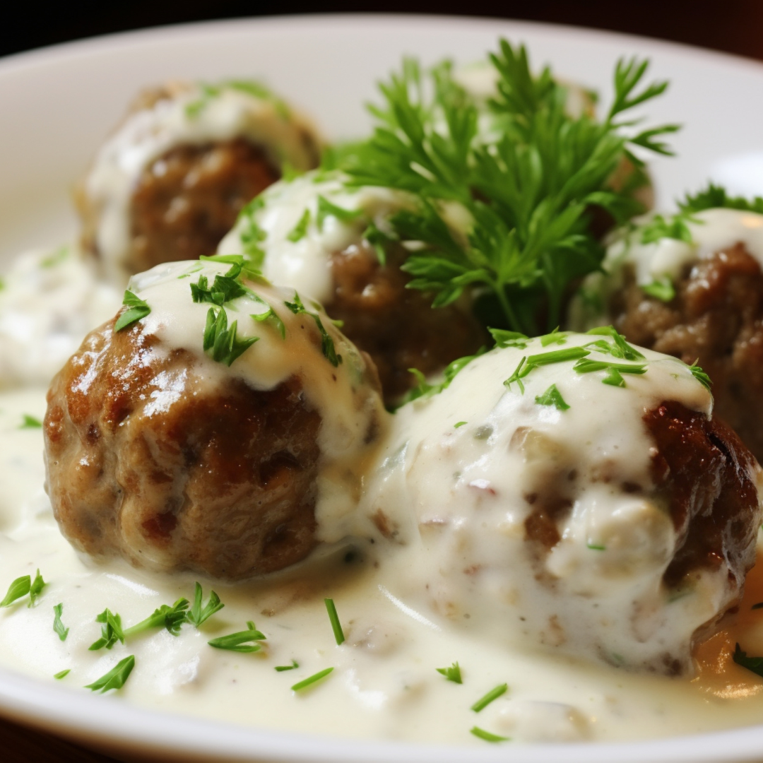 Albóndigas de salmón y jaiba sobre crema de coliflor y piñones al curry
