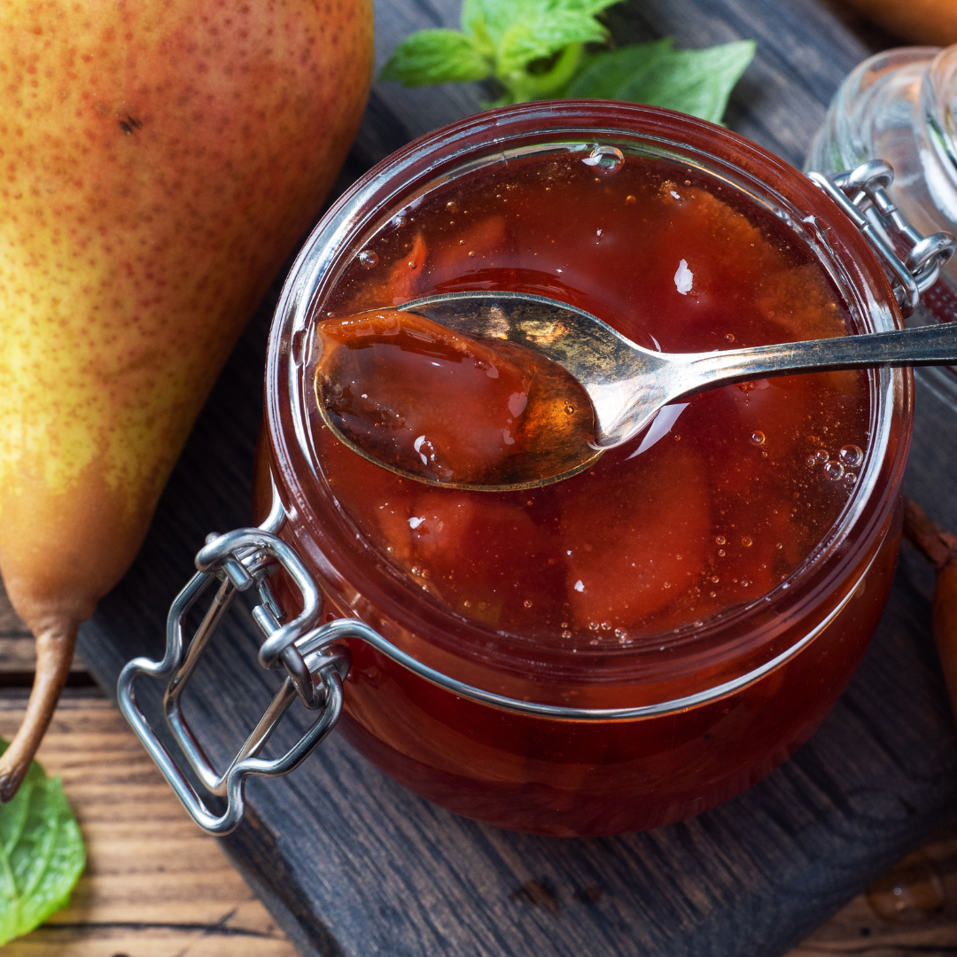 En una Olla Therma Marmicoc disponemos el zapallo, la pera y la cebolla, todo troceado en cubos medianos. Añadimos el azúcar mascabado y calentamos a fuego bajo hasta que comience a caramelizar. Incorporamos el resto de ingredientes, tapamos la olla y con la potencia del calor al máximo, llevamos a ebullición. Bajamos a potencia media-baja, y dejamos cocer hasta que el conjunto adquiera textura de mermelada. Dependiendo de la maduración de los ingredientes utilizados, el tiempo estimado oscilará entre 60 y 90 minutos.  Podemos incorporar un poco de agua a media cocción si fuese necesario.