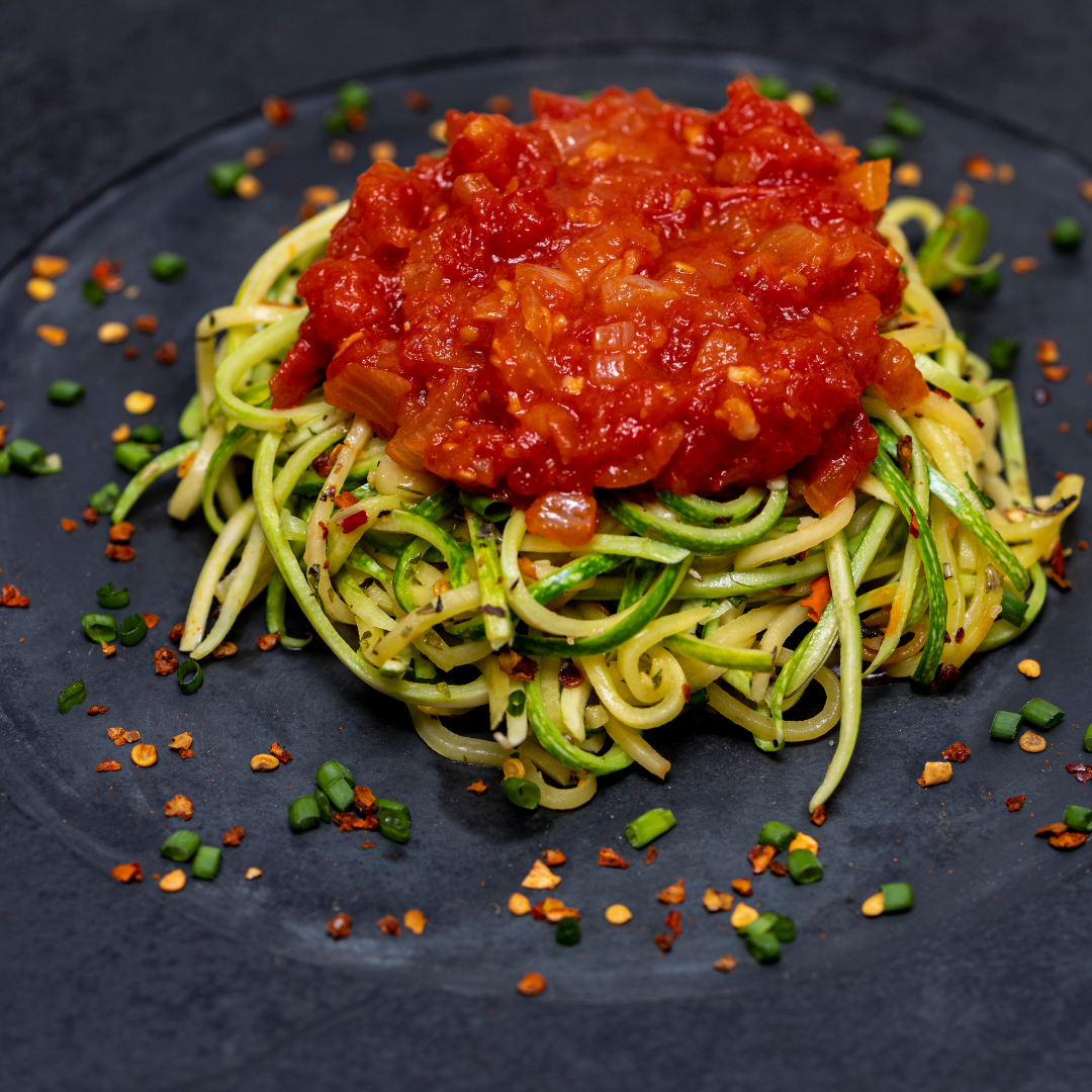 Cocer la pasta y reservar. En una Sartén Fuego de Marmicoc, colocar aceite de oliva y saltear brevemente el brócoli, previamente cocido al vapor. Agregar el ajo picado y saltear un poco, luego agregar el tomate y por último la crema de leche de soja. Condimentar al gusto. Por último agregar la pasta y servir.